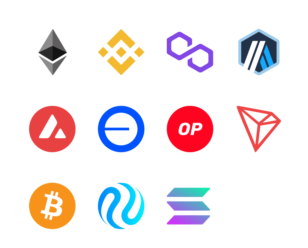 Supported chains: Ethereum, BNB, Polygon, Arbitrum, Avalanche, Base, Optimism, Tron, Bitcoin, Injective.